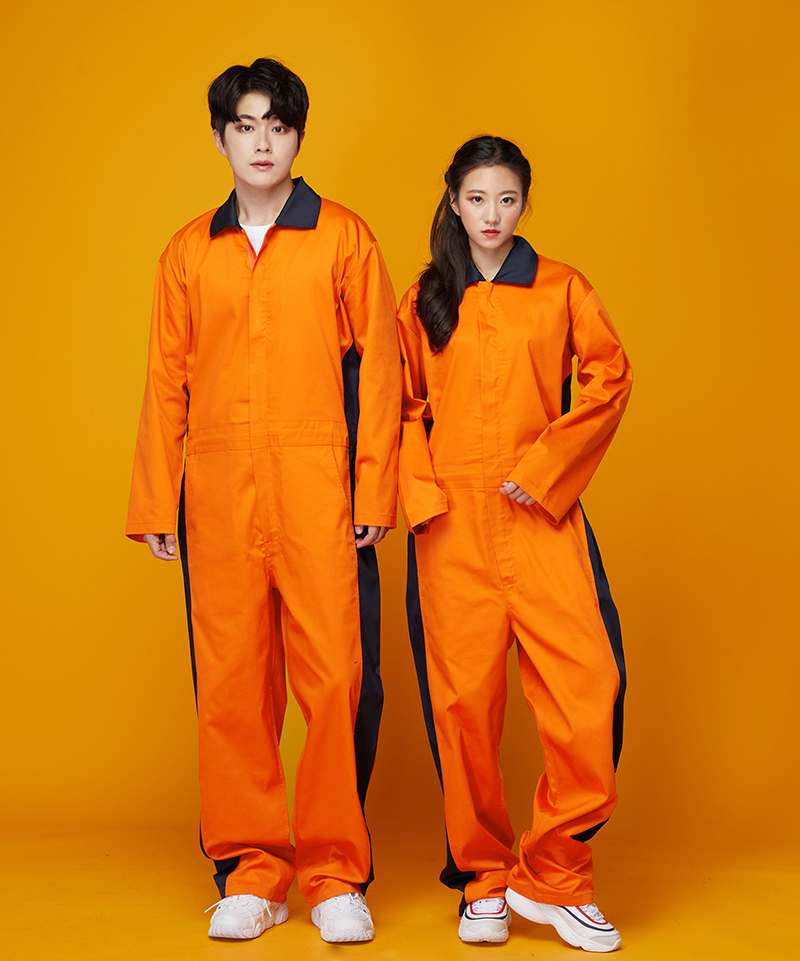 오렌지 긴팔 점프수트 (긴팔+긴바지)